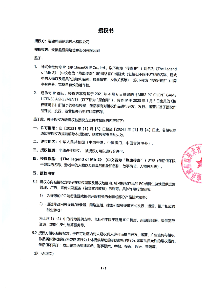 關于對《The Legend of Mir 2》(熱血傳奇) 衍生品游戲直播的嚴正聲明